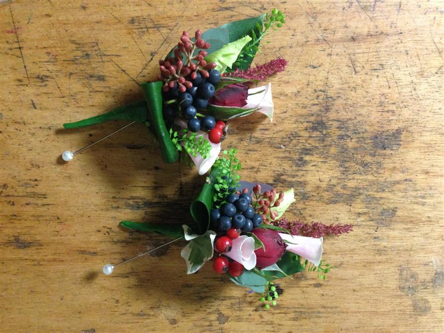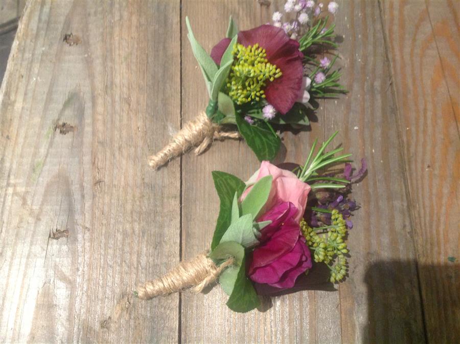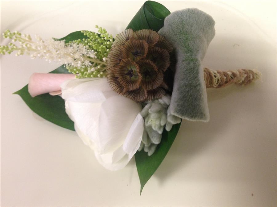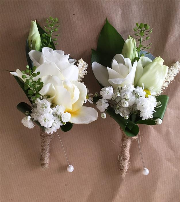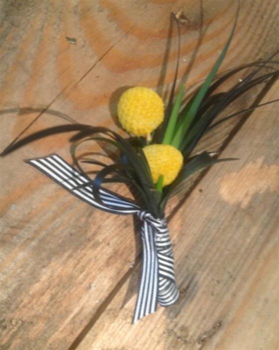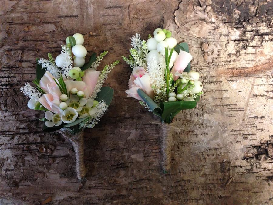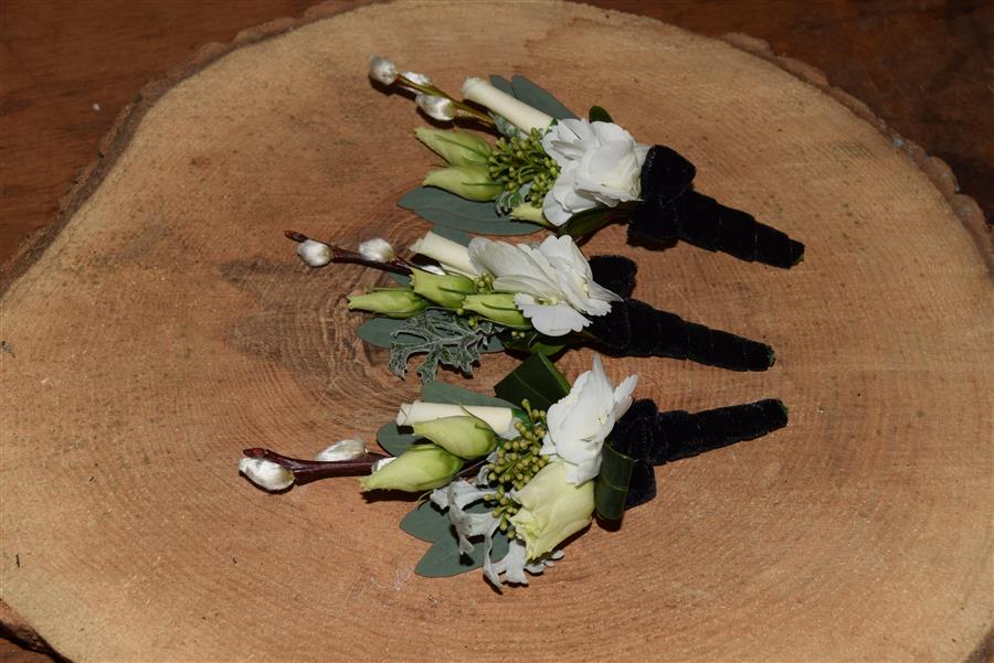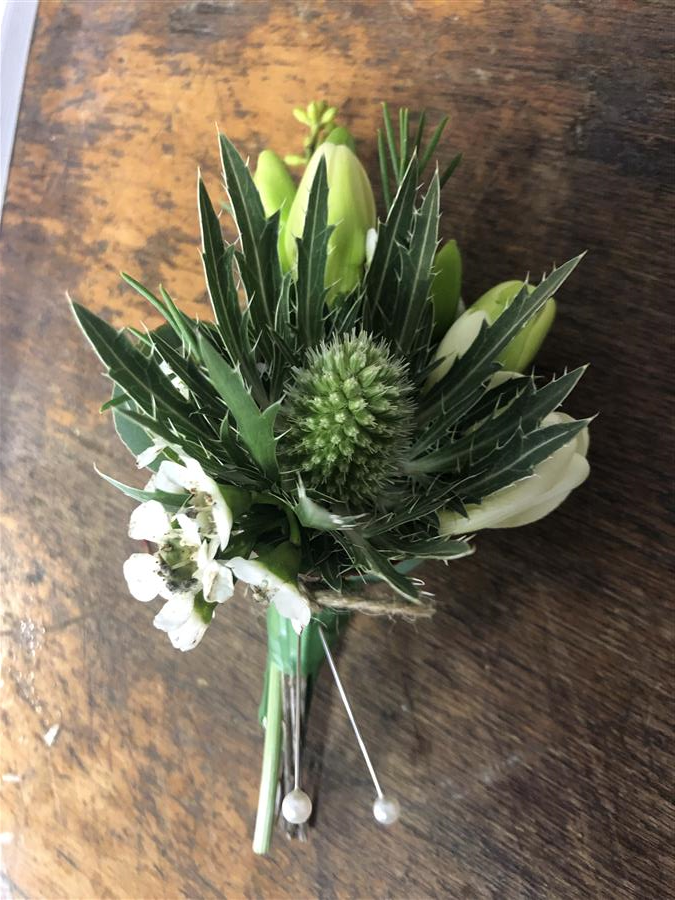 Wether it be a simple, perfectly wired single flower, or a combination of country ones tied together, we can create a buttonhole that not only matches your bouquet but also the grooms personality. The only limit on the design is our imagination