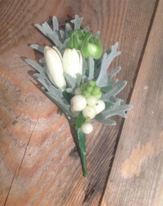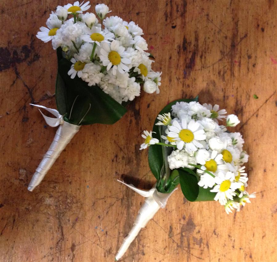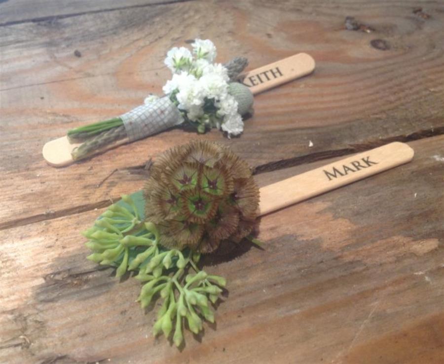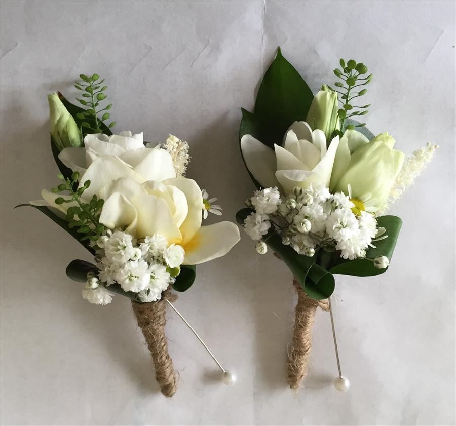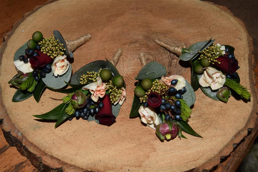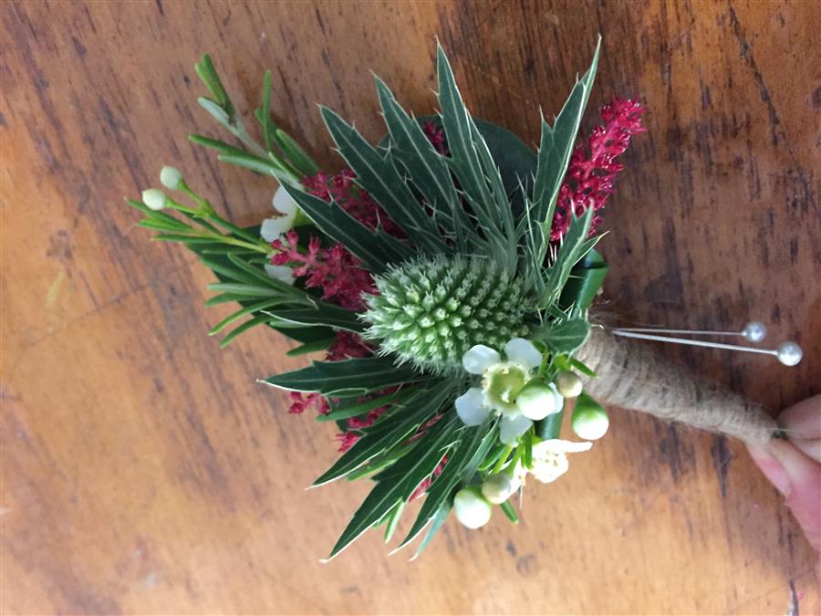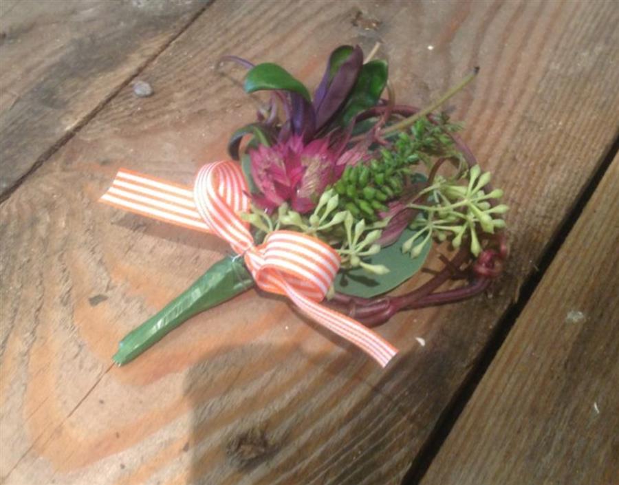 Wether it be a simple, perfectly wired single flower, or a combination of country ones tied together, we can create a buttonhole that not only matches your bouquet but also the grooms personality. The only limit on the design is our imagination