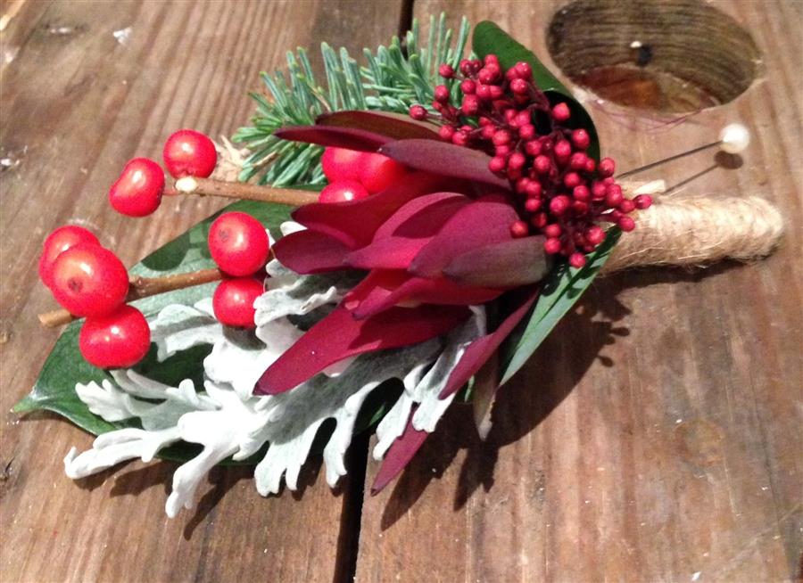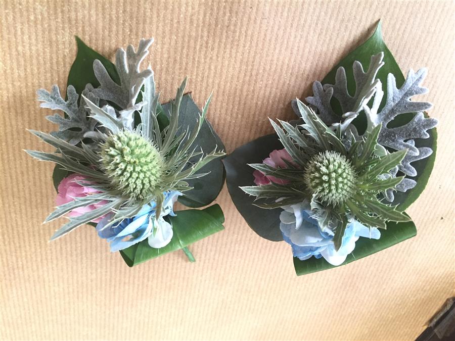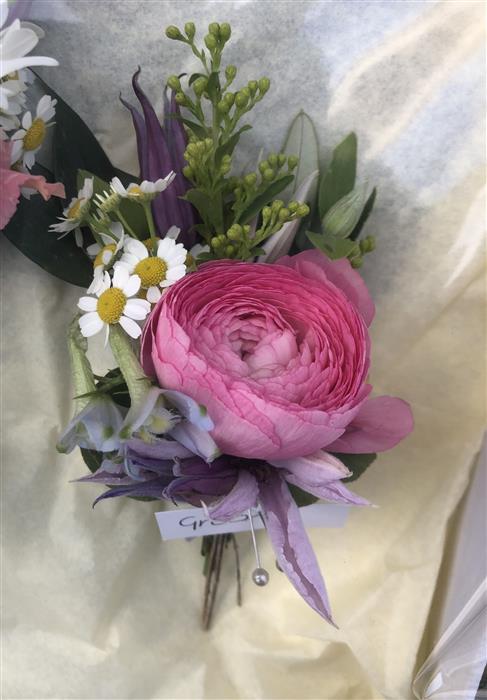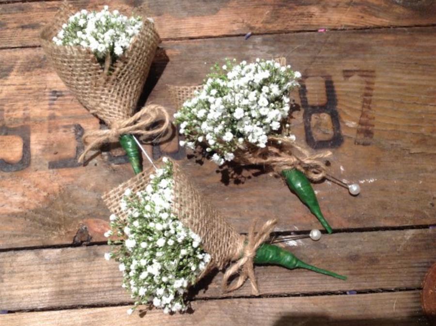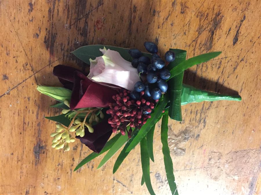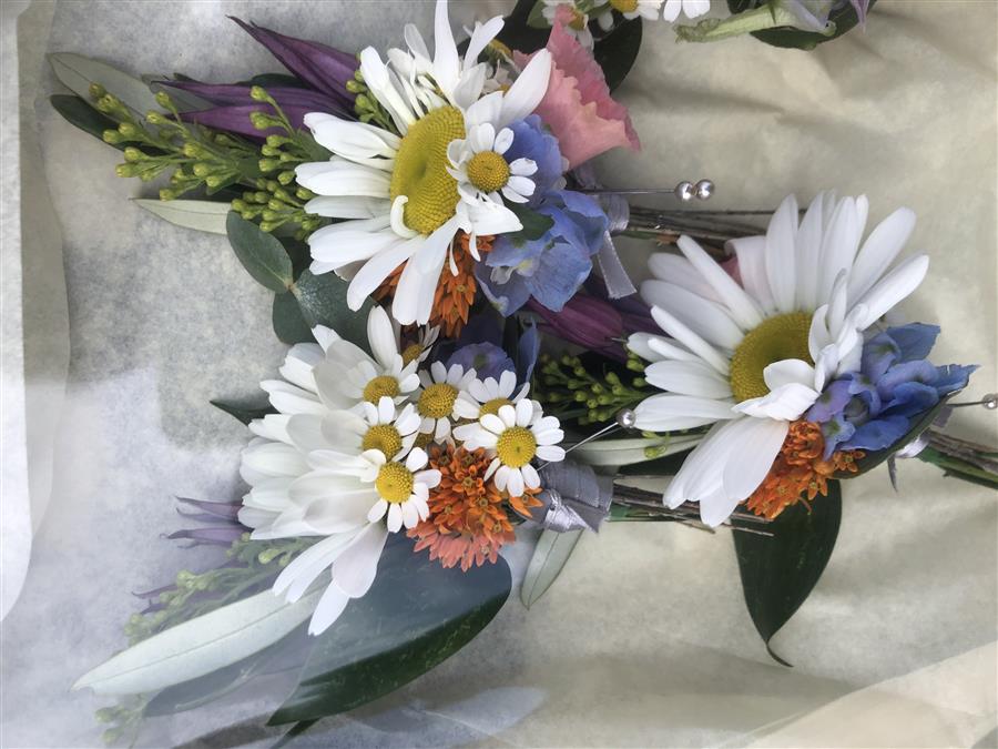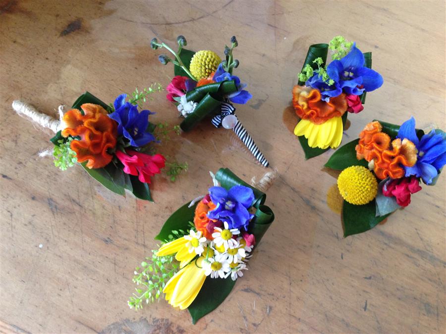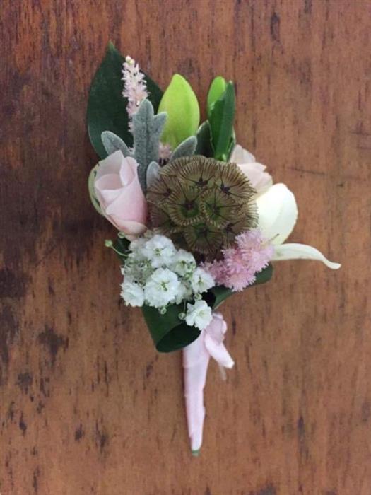Wether it be a simple, perfectly wired single flower, or a combination of country ones tied together, we can create a buttonhole that not only matches your bouquet but also the grooms personality. The only limit on the design is our imagination