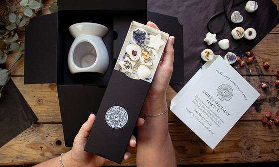 A stunning gift box filled with a burner, candle and 10 different scented wax melts which are handmade, vegan and plastic free. A perfect present for someone who has everything.