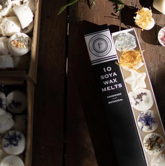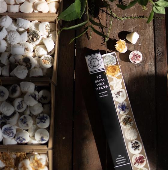 A mix of 10 soya wax melts. They are plastic free, 100%vegan, ethically sourced and handmade in the uk. i can’t tell you how amazing these smell and are the perfect little add on gift.