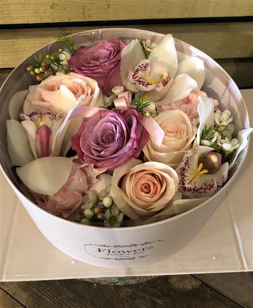 A stunning presentation box of flowers available in any colour palette and when opened up displays the stunning flowers inside.