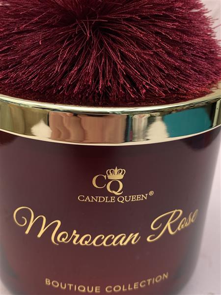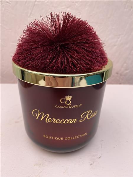 Stunning candle with pompom top. Smells of Moroccan rose and the claret glass container is bound to make anyone feel special. 10cmx10cm